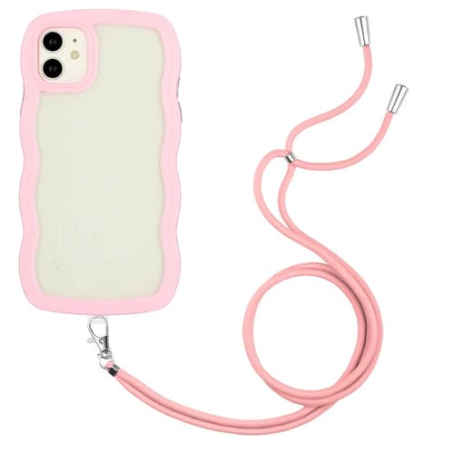 Funda para iPhone 11 Lanyard Candy Color Wave TPU Clear PC Phone Case (Rosa)