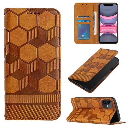 Funda de Teléfono para iPhone 11 con Tapa de Cuero Magnético y Textura de Fútbol (Caqui)