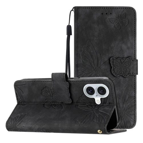 Funda para Teléfono iPhone 16 Plus Cuero con Tapa Horizontal Textura de Seda (Negro)
