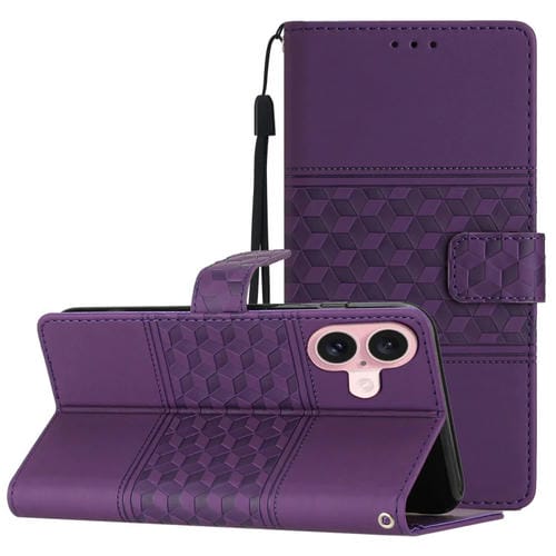 For iPhone 16 Plus Diamond Embossed Skin Feeling Leather Case (Purple)