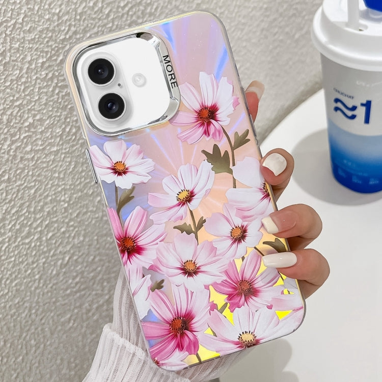 Funda de TPU con Textura de Flor Láser Galvanizado para iPhone 16 Plus (Flor Cosmos Ah7)