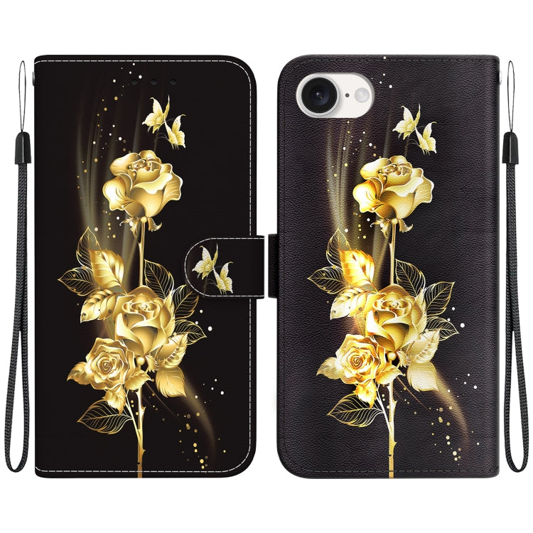 Funda de Cuero para iPhone 16E con Dibujo de Colores y Textura de Cristal (Peonía Dorada)