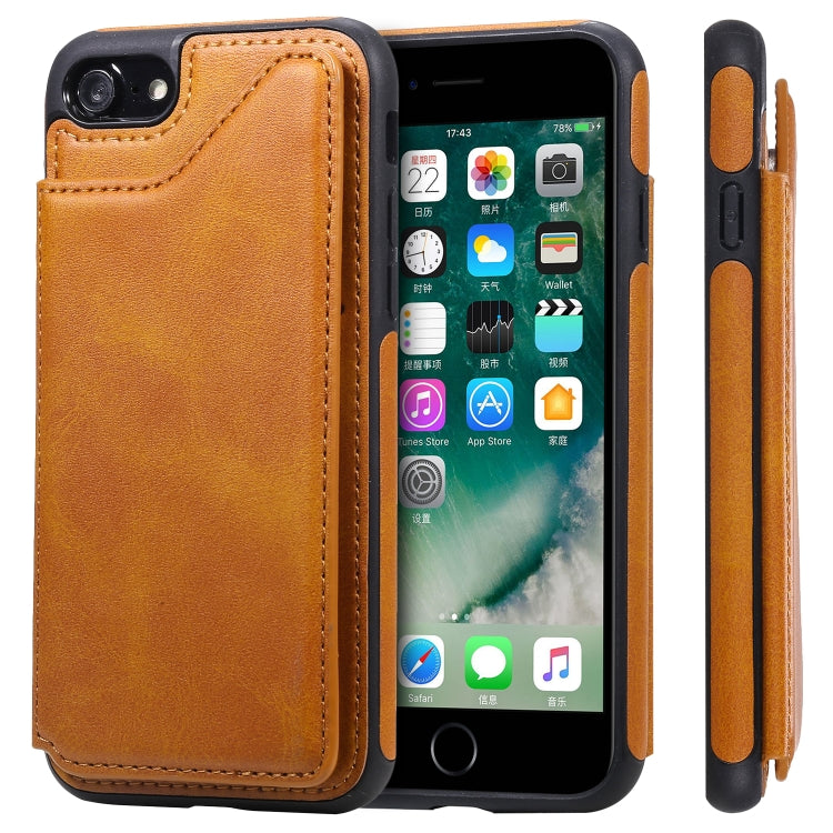 Funda Protectora iPhone 7/8 Textura Pantorrilla Soporte Ranuras Tarjetas (Marrón)