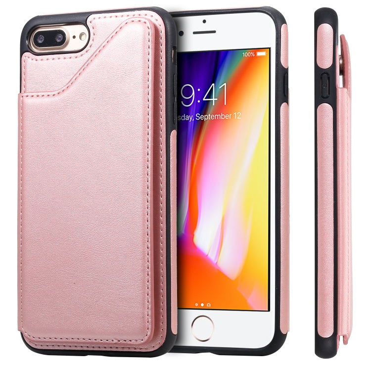 Funda Protectora iPhone 7 Plus 8 Plus Textura Pantorrilla Soporte Ranuras Tarjetas (Oro Rosa)