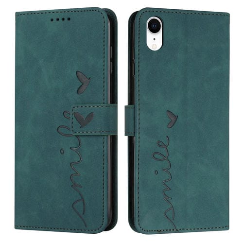 Funda para Teléfono iPhone X / Xs Skin Feel Heart Pattern Cuero (Verde)