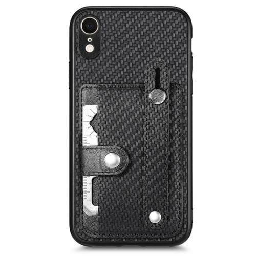 Funda para iPhone Xr Retro Skin-Feel Ring Card Wallet Phone Case (Negro)