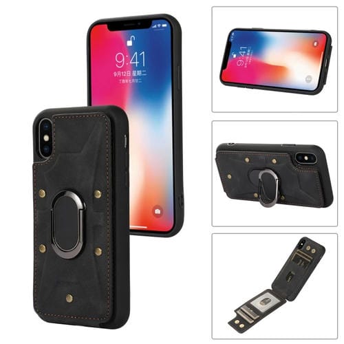 Funda para iPhone X Xs Armor Ring Wallet Back Cover Phone Case (Negro)