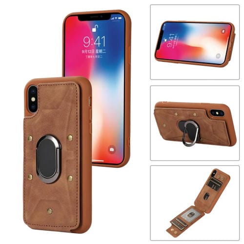 Funda para iPhone X Xs Armor Ring Wallet Back Cover Phone Case (Marrón)
