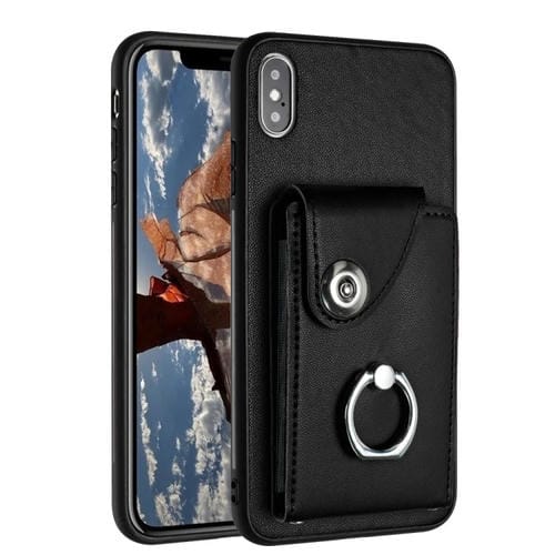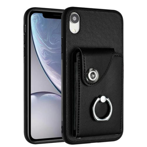 Funda para Teléfono iPhone Xr con Soporte para Anillo y Bolsa para Tarjeta de Órgano (Negro)