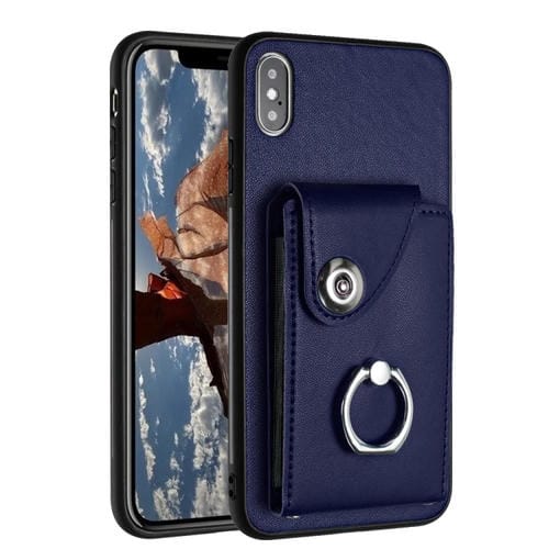 Funda para Teléfono iPhone X Xs con Soporte para Anillo y Bolsa para Tarjeta (Azul)