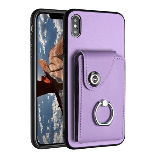 Funda para teléfono iPhone Xs Max con soporte para anillo y bolsa para tarjeta de órgano (Púrpura)