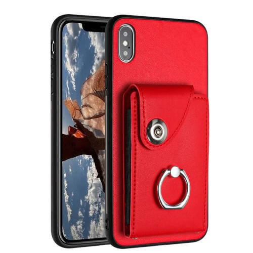 Funda para Teléfono iPhone X / Xs con Soporte para Anillo y Bolsa para Tarjeta de Órgano (Rojo)