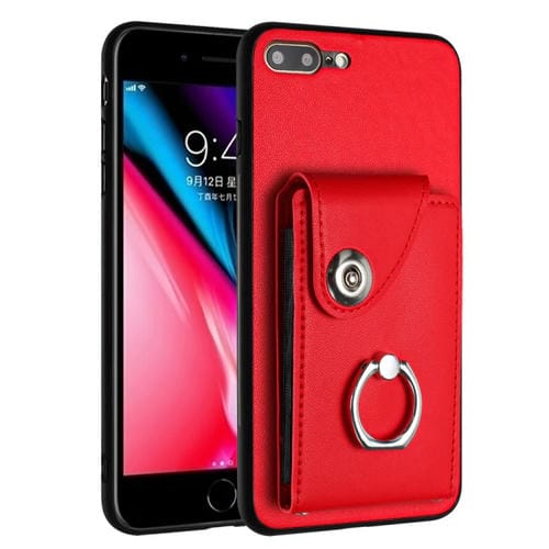 Funda para Teléfono iPhone 8 Plus/7 Plus con Soporte para Anillo y Bolsa para Tarjeta (Rojo)