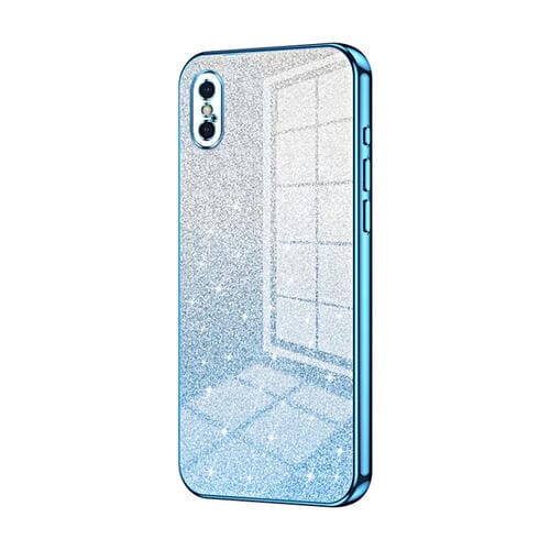 Estuche para teléfono iPhone Xr Galvanizado con brillo degradado en polvo (Azul)