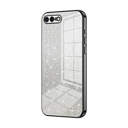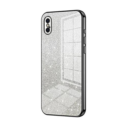 Estuche para teléfono iPhone X / Xs galvanizado con polvo de brillo degradado (Negro)