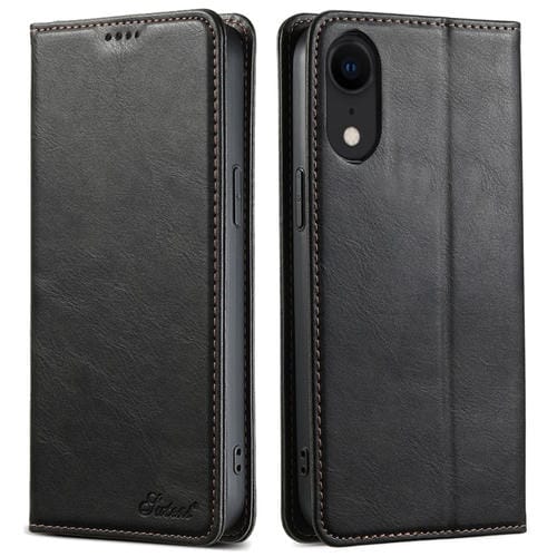 Funda de Cuero Suteni J02 para iPhone Xr con Billetera de Cera de Aceite (Negro)