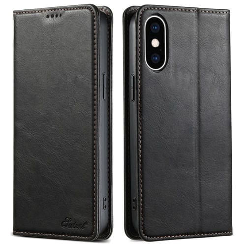 Funda para Teléfono Suteni J02 para iPhone X Xs Cuero con Billetera y Cera de Aceite (Negro)
