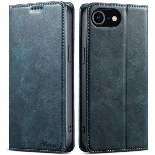 Funda para iPhone 7/8/Se 2022 Suteni J02 Cuero con Billetera Cera de Aceite (Azul)