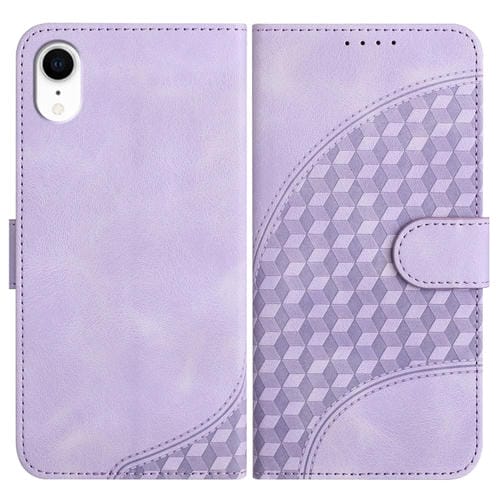Funda de Cuero para iPhone Xr Yx0060 con Relieve Cabeza de Elefante y Cordón (Púrpura Claro)