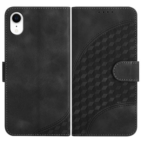Funda de Cuero para Teléfono iPhone Xr Yx0060 con Relieve Cabeza de Elefante y Cordón (Negro)