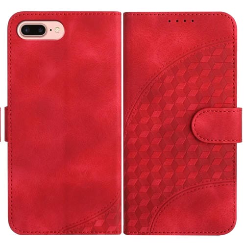 Funda de cuero para iPhone 8 Plus/7 Plus Yx0060 con relieve y cabeza de elefante con cordón (Rojo)