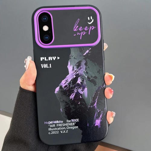 Funda para Teléfono TPU iPhone Xs Max con Ventana Grande y Patrón Montaña Nevada (Púrpura)