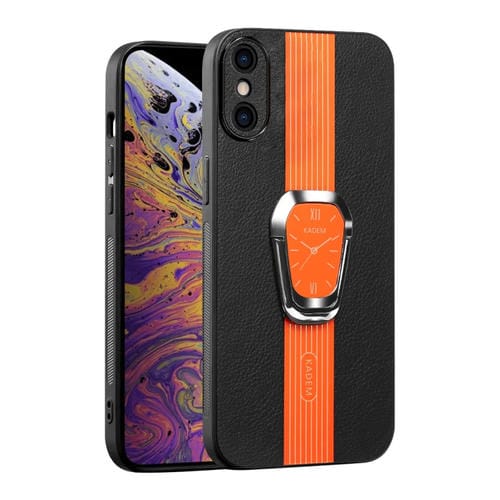 Funda Trasera de Cuero Litchi Magnética con Soporte para iPhone X / Xs (Naranja)