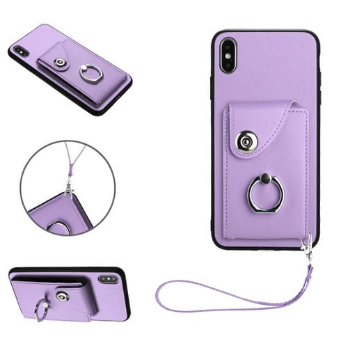 Funda para Teléfono iPhone Xs Max PU con Soporte Anillo Bolsa Tarjeta Cordón (Púrpura)
