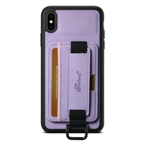 Funda para Teléfono Suteni H13 para iPhone Xs Max con Correa para Muñeca de Cuero Litchi (Púrpura)