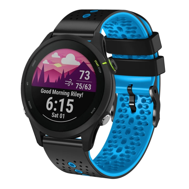 Correa de Reloj de Silicona Bicolor Perforada para Garmin Forerunner255 22mm (Negro + Azul)