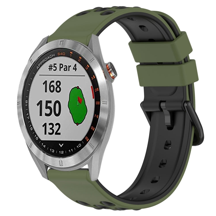 Correa de Reloj Garmin Approach S40 20mm silicona porosa dos colores (Verde Militar + Negro)