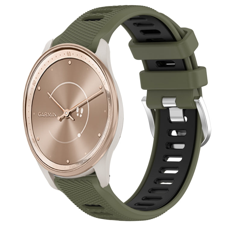 Correa de Reloj Garmin Move Trend 20mm silicona deportes hebilla acero (Verde Militar + Negro)