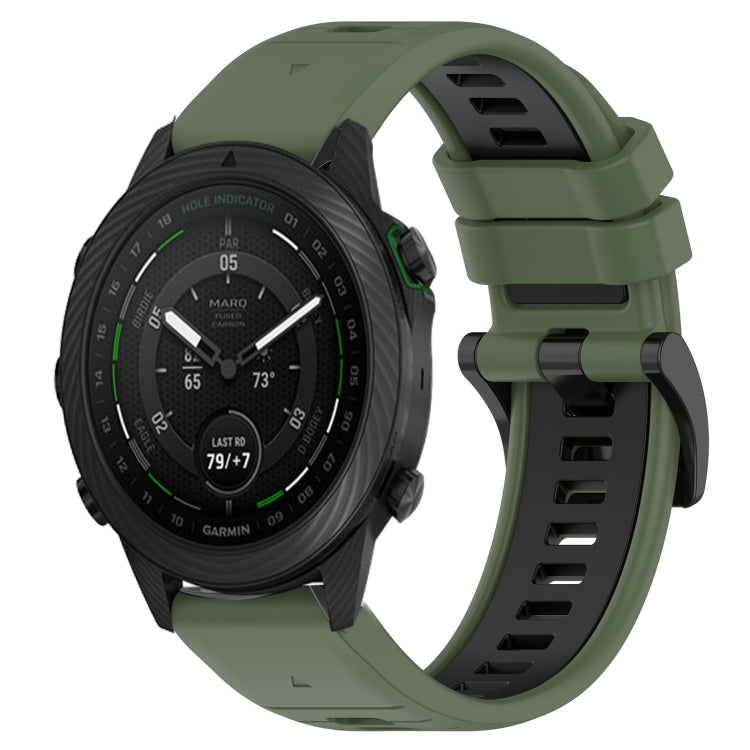 For Garmin MARQ Golfer 22mm Sport Two-Tone Silicone Watch Band (Olive Green + Black)