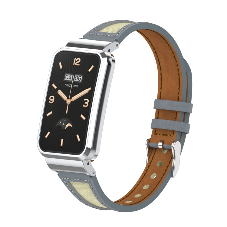 Correa de Reloj Xiaomi Mi Band 7 Pro con Marco de Metal y Cuero de Cintura Pequeña (Gris)