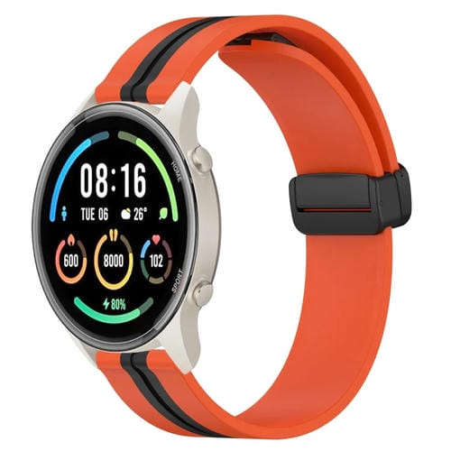 Correa de Reloj Xiaomi Mi Watch Sport 22mm Silicona Cierre Magnético Plegable (Naranja + Negro)