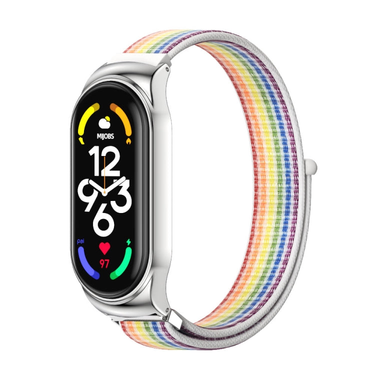Banda de Reloj para Xiaomi Mi Band 7 y 7 Nfc Mijobs Nylon y Acero Inoxidable (Rainbow Rose Gold)