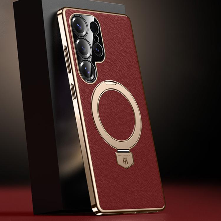 Funda de cuero lisa con soporte MagSafe para Samsung Galaxy S25 Ultra 5G (roja)
