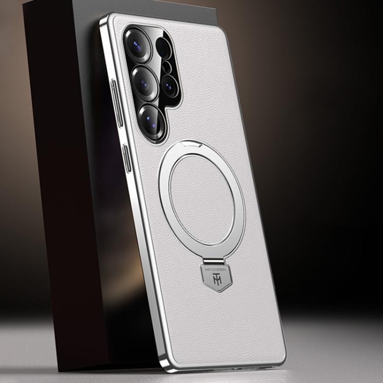 Funda de cuero lisa con soporte MagSafe para Samsung Galaxy S25 Ultra 5G (blanca)
