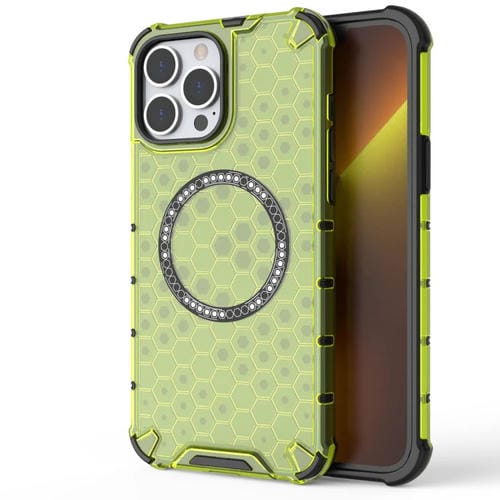 For iPhone 13 Pro Max Honeycomb Magnetic Ring Shockproof Phone Case (Green)