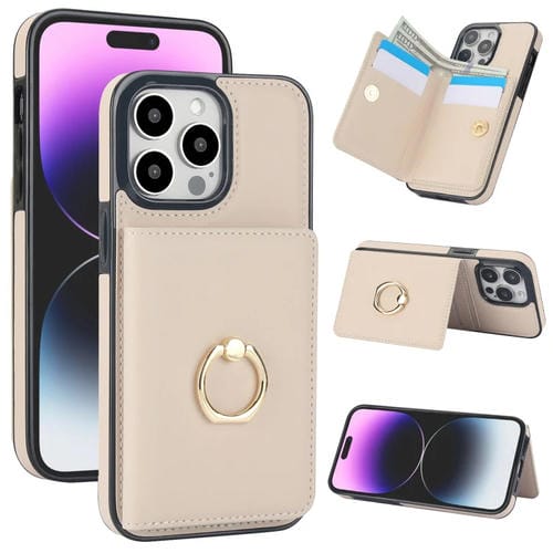 For iPhone 13 Pro Max RFID Phone Case with Anti-Theft Card Ring Holder (White)