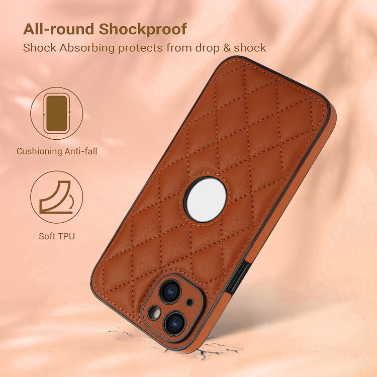 Funda para teléfono iPhone 14 con contraportada de cuero rómbico (Marrón)
