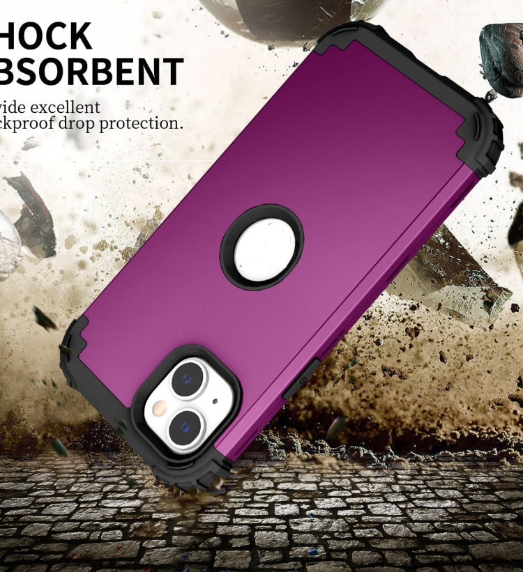 Funda de teléfono híbrida 3 en 1 para iPhone 15 Plus silicona a prueba de golpes PC (Púrpura)
