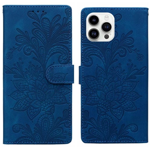 Funda de Cuero con Hebilla Magnética y Encaje Floral En Relieve para iPhone 16 Pro (Azul)
