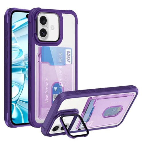 Estuche para Teléfono TPU Híbrido Acrílico con PortaTarjetas para iPhone 16 (Púrpura)