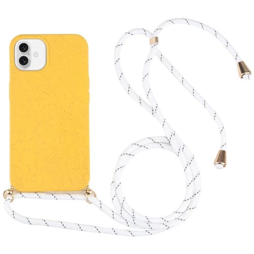 Funda para iPhone 16 TPU a Prueba de Golpes con Paja de Trigo y Cordón para El Cuello (Amarillo)