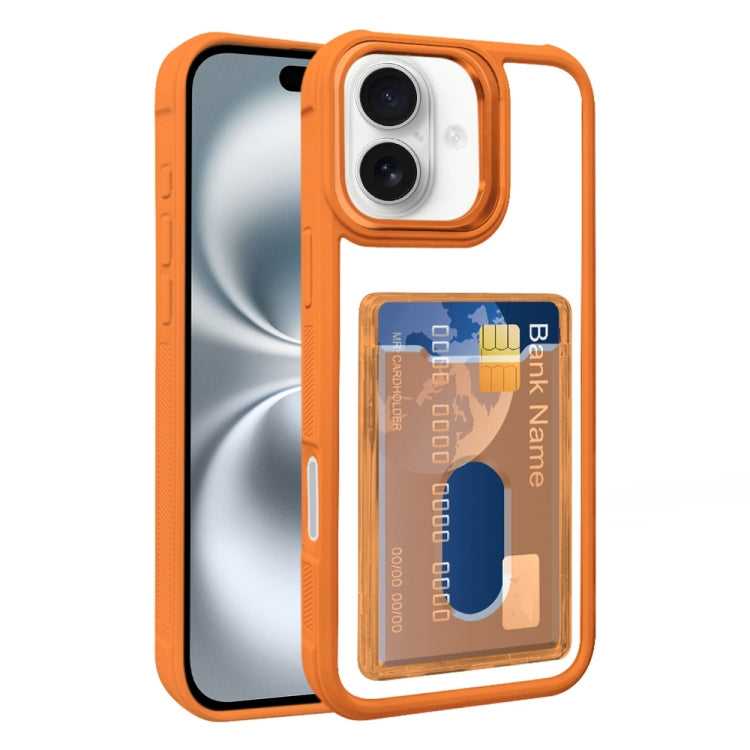 Funda para Teléfono Híbrida TPU Acrílico con Funda de Tarjeta Galvanizada para iPhone 16 (Naranja)