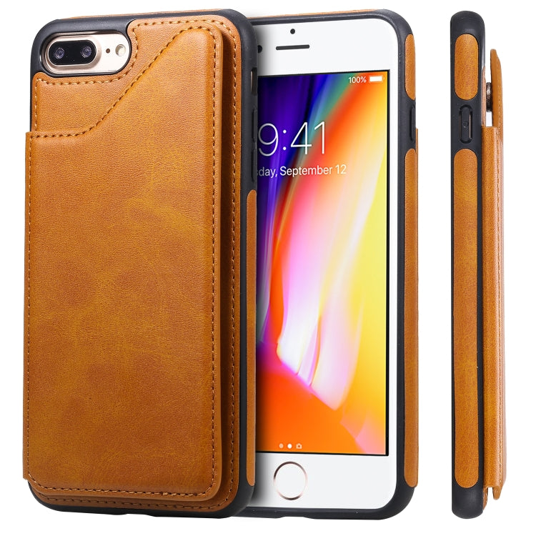 Funda Protectora iPhone 7 Plus 8 Plus Textura Pantorrilla Soporte Ranuras Tarjetas (Marrón)