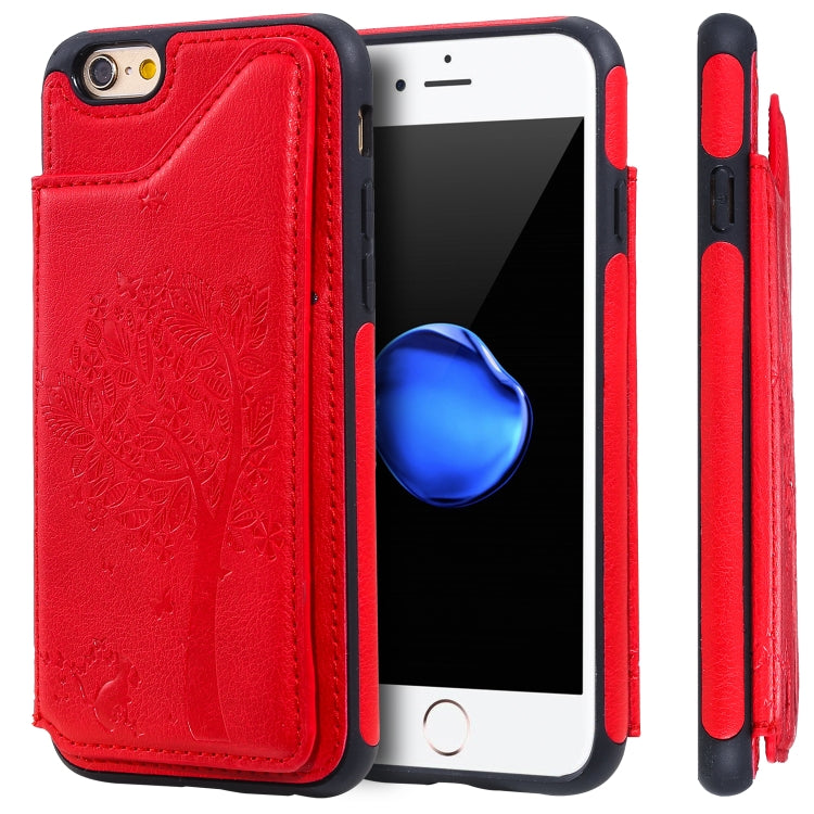 Funda Protectora iPhone 6 y 6S Patrón Árbol de Gato con Ranuras Tarjetas Marco Fotos Soporte (Rojo)