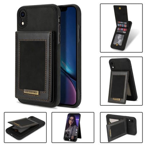 Estuche para teléfono N.Bekus iPhone Xr Ranura para Tarjeta con Tapa Vertical Rfid (Negro)