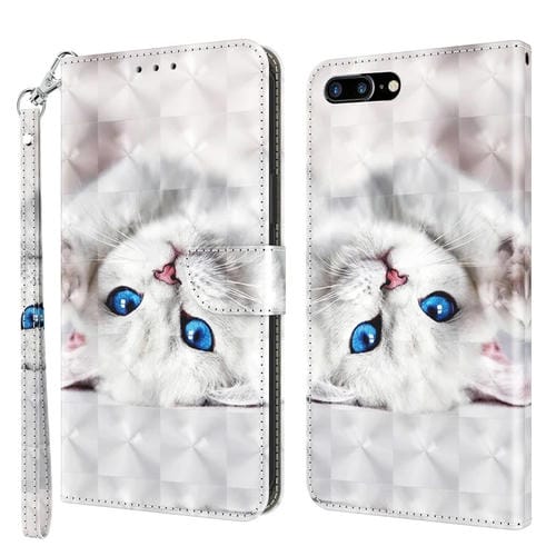 Estuche para Teléfono Cuero Pintado 3D iPhone 8 Plus / 7 Plus (Reflejo de Gato Blanco)
